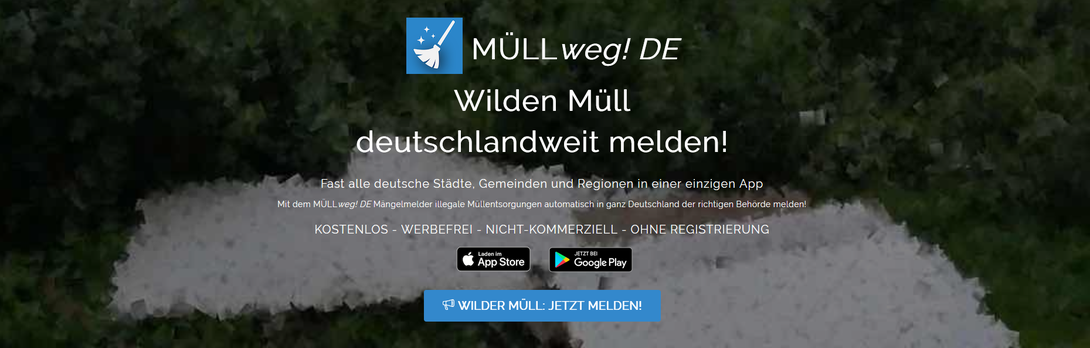 Melde wilden Müll einfach per App von Müllweg!DE – App installieren und deutschlandweit wilden Müll jederzeit einfach vor Ort per Smartphone erfassen und automatisch an die zuständige Stelle melden. Ohne lästiges Suchen.